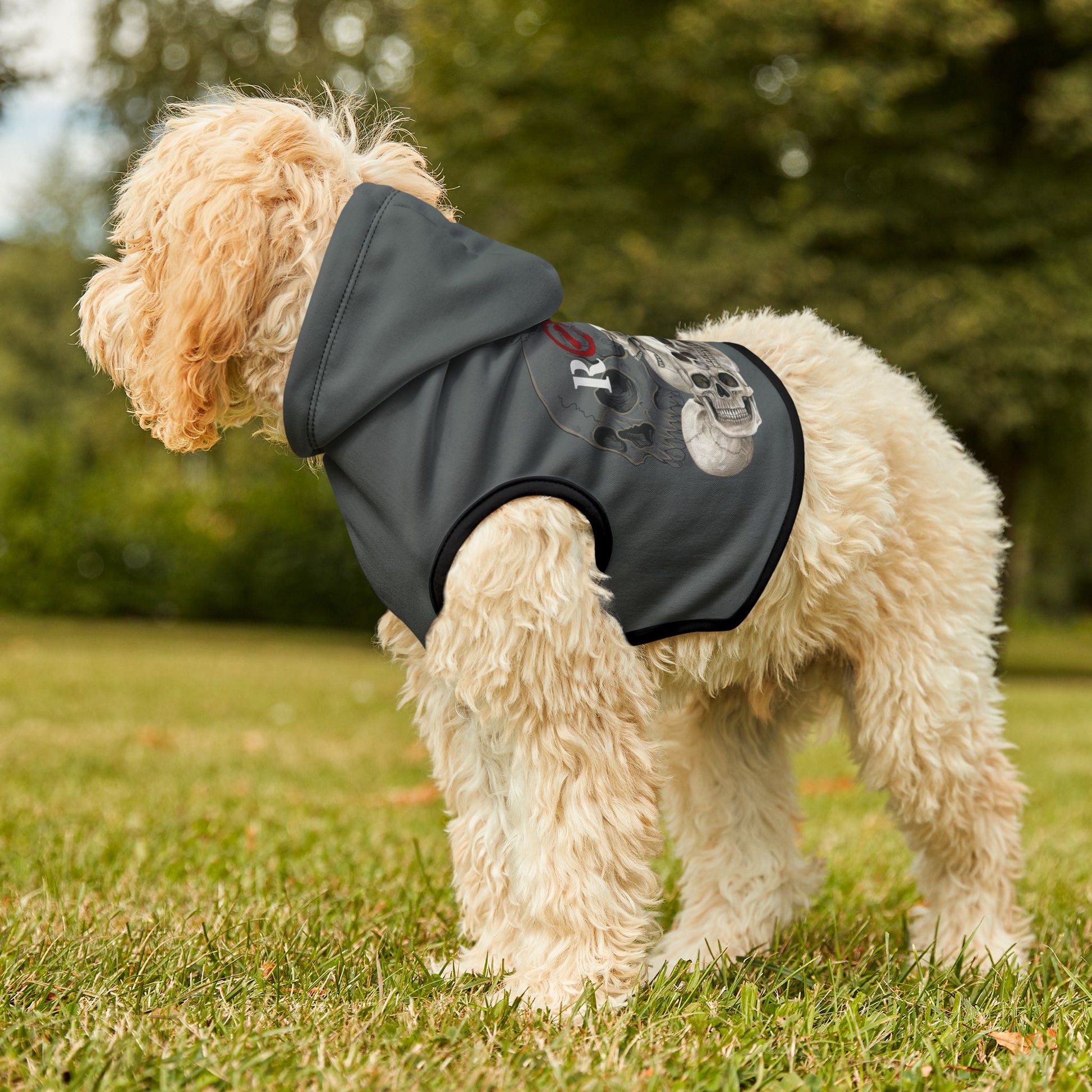 Match your pet with a SKULLS - T-SHIRT (found in our T-shirt collection) or SKULLS HOODIE (Found in our Hoodies Collection). See back of T-shirt and Hoodie for matching design.